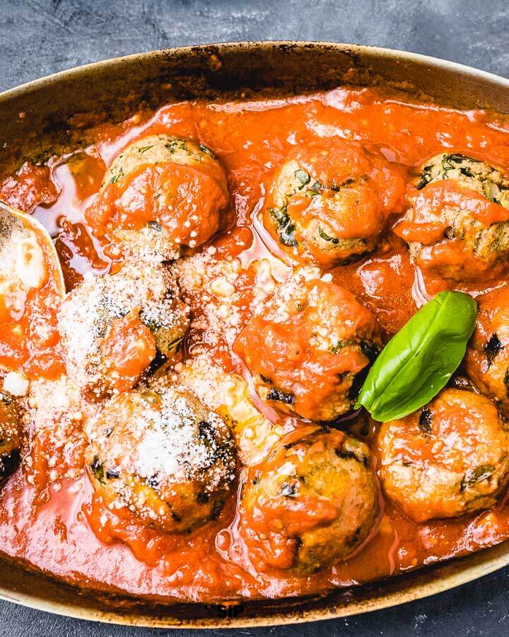 - Serve meatballs in tomato sauce, top with more grated cheese, and enjoy with bread.